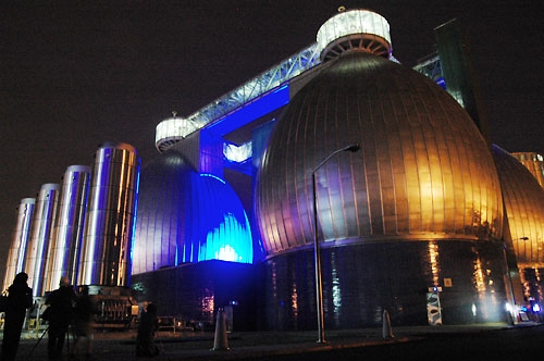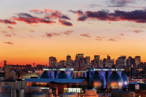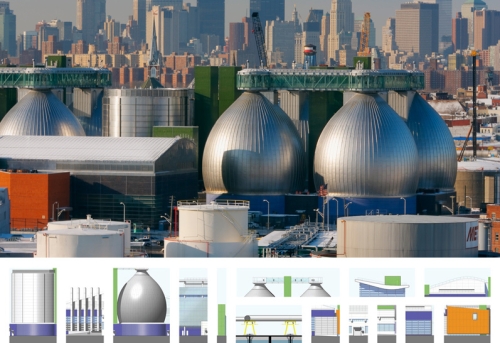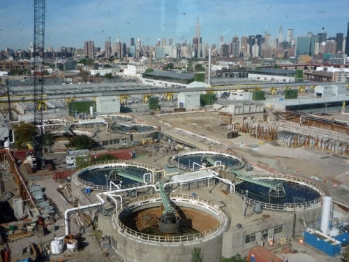 Na drugom kraju vage je postrojenje koje je skoro otvoreno u Bruklinu, Njujork. Tamo, arhitekta Ričard Olkot (Richard Olcott), iz biroa Ennead Architects je radio sa Odeljenjem za zaštitu životne sredine Njujorka (New York City Department of the Environment) od 1991. godine na faznoj nadogradnji devet različitih zgrada, vrednoj 4,5 milijarde dolara, koje čine Newtown Creek postrojenje za preradu otpadnih voda. Postrojenje od 22 hektara tretira otpadne vode od neverovatnih 1,5 miliona ljudi dnevno, ispuštanjem prerađenih voda u Ist River.