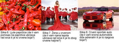 Fizički - dokazano je da boje stimulišu telo, podstiču osnovne instinkte opstanka, pa čak i povećavaju otkucaje srce. Primer takve boje je crvena. Pogledajte fotografije iznad i razmislite o tome kako se osećate zbog crvenih objekata.