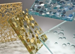Prvo, proces laminacije dozvoljava ravnomernu raspodelu materijala unutar stakla; i drugo, ona omogućava stvaranje jasnih, izloženih ivica koje dozvoljavaju postavke materijala bez rama. Rezultat je bešavni spoj stakla, materijala i slojeva u vizuelno dramatične panele čiji su slojevi delikatno i dimenzionalno očuvane.