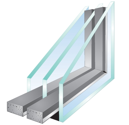 Sedamdesetih godina prošlog veka, proizvođači su pokušali da dodaju treći sloj stakla koji bi dodatno povećao izolacionu vrednost. Ovo je povećalo R-vrednost (u centru stakla) na oko R-3. Američki proizvođači su uglavnom imali problema sa ovim pristupom, jer kako su povećali težinu prozora oni nisu adekvatno ojačali okvire i opremu. Problem je usledio, a industrija je polako počela da zazire od troslojnih prozora.