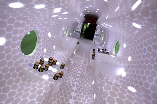 Tako da je ljuska izgrađena od šest vrsta modularnih komponenti koje su mogle da budu smeštene unutar kabine tako da se formira bar, stolovi i stolice za petoro ljudi. Površine tih komponenti sastoji se od gumenih diskova nalik balonima.