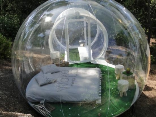 Prošle godine, dizajner Pjer Stefan Duma (Pierre Stephane Dumas) predstavio je svoju liniju transparentnih mehura veličine sobe koje omogućavaju ljudima da spavaju u prostoru koji im skoro ni čim ne blokira pogled na prirodu. Njegov cilj je bio da stvori prenosivi prostor koji vam daje osećaj da ste usred bilo kog prirodnog okruženja - i bez mnogo uznemiravanja okolnog ekosistema.