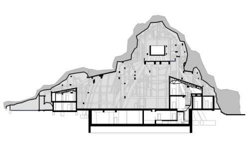 Sama staklena struktura, u transparentnom otvorenom prostoru odvojenom na ovaj način bi dozvolila posetiocima da se u potpunosti dive originalnom okviru. Ipak, koncept je bio još preduzimljiviji: trebalo je biti staklom odvojen prostor izložbe i posetioca, sa prostorom kretanja posetioca između stakla i stenovitih formacija.