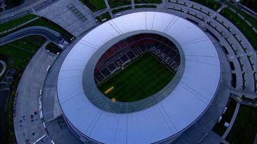 PGE Arena nalazi se u Gdansku, a cena joj iznosi 8,5 miliona eura. Stadion nije u potpunosti dovršen, a karakteriše ga fasada od polikarbonatnih modula, stvarajući zlatni odsjaj na zakrivljenoj opni.