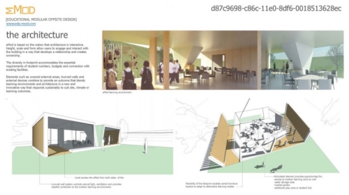 Projekat pobedničkog tima arhitektonskog biroa Architectus osvojio je 25.000 australijskih dolara za njihovu futurističku viziju škola. Nazvan eMOD (Educational Modular Offsite Design), ovaj koncept je fleksibilni modularni koncept koje se može konfigurisati da stvori rešenje objekta koji se prilagođava specifičnim zahtevima kao što su lokacija, klimatski uslovi i ishodi obrazovanja. Pobedničko rešenje ukljičivalo je pametan predlog aplikacije koja formuliše modularni dizajn, što se pokazalo kao pravi hit među sudijama.
