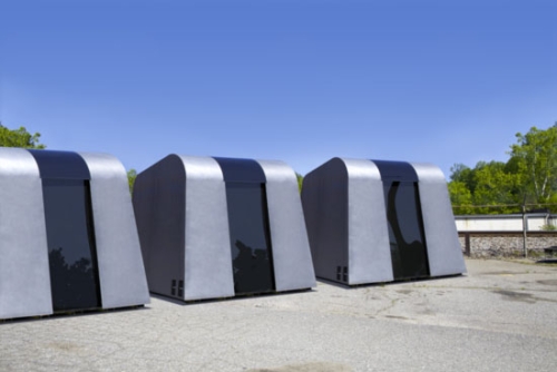 Stambena jedinica Exo se dostavlja u dve komponente, bazna ploča i gornja školjka. Jedinice su projektovane tako da gornje školjke mogu da budu posložene kao skup plastičnih čaša, jedna na drugu. Bazna ploča se postavlja na željenu poziciju, zatim četiri radnika mogu da podignu Exo školjku, pozicinirajući je na baznu ploču, i povezujući ih pomoću kopči.
