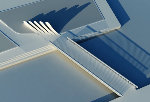 Dizajn mosta je odabran tako da se dobro uskladi sa prestižnom sredinom Trgovačkog trga. Tokom procesa otvaranja, most se pretvara u kinetičku skulpturu čija silueta naglašava otvoreni prostor "Sunset Terrace".