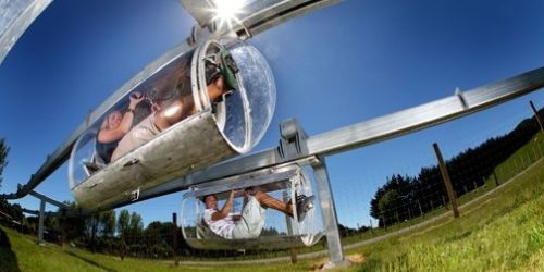 Sledeći projekat transporta je Shweeb. Ovaj elektronski sistem koristi ideju bicika kako bi došli od tačke A do tačke B, i malo je izdignut od zemlje.