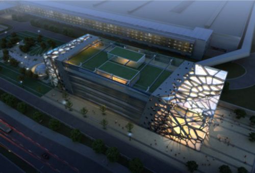 Najjedinstveniji aspekt projekta je dizajn zgrade i sposobnost da menja oblik, ili se transformiše, bukvalno. Dvostruki sistem omotača u celoj zgradi čini ovaj "transformator zgrada" moguć. Unutrašnji omotač brine o kućištu i izgradnji sistema. Spoljni omotač sadrži delove koji mogu biti otvoreni ili zatvorena da oponašaju različite oblike životinja. Iz čiste pravougaone kutije kao početnog stanja, severna fasada pretvara se u orla i leptir, južni nabor u žabu koja pliva. Ovi oblici životinja odražavaju razumevanje kompanije ka osetljivoj ravnoteži između prirode i veštačkog pronalaska za ekološki ljudski razvoj. Takođe, kao dizajnerska strategija, usvojena je ideografska forma da se prenese tradicionalna kineska kultura simbolike za vođstvo (orao), prolaznost i krhkost (leptir) i prosperitet (žaba).