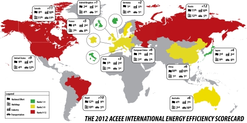 Sjedinjene Američke Države zaostaju za osam drugih velikih svetskih ekonomija u pogledu energetske efikasnosti, prema prvoj Međunarodnoj rang listi energetske efikasnosti, koja je urađena od stane neprofitne organizacije Američkog saveta za energetski-efikasnu ekonomiju (American Council for an Energy-Efficient Economy - ACEEE) iz Vašingtona. Rangiranje je uključivalo dvanaest najvećih ekonomija sveta.