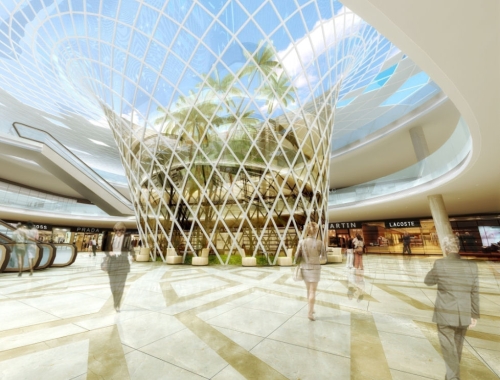 U okviru 125.000 metara kvadratnih nalazi se veliki broj prodavnica vrhunskih brendova koje su grupisane oko tematskih unutrašnjih dvorišta sa radom sličan laticama koje se spuštaju u dvorišta sa staklenog krova. Centralni unutrašnji atrijum je projektovan tako da maksimalizuje prodor prirodnog osvetljenja i poboljša prirodnu ventilaciju objekta.