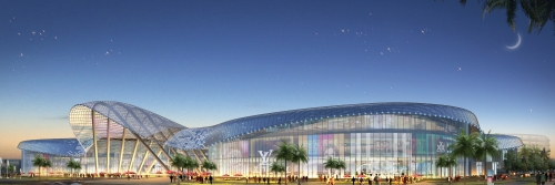 Talasasti oblik stakla tržnog centra je opisan od strane arhitekata ovako: "Inspiracija projekta dolazi iz cveta Hainting bej, simbola grada Sanije. Od koncepta cveta dolazi sveukupna distribucija master plana, kao i organski i slobodna forma ključnih objekata."