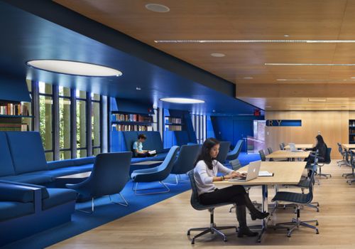 Tradicionalno koncipiran kao pojedinačna namena prostora, namenjen samo za proučavanje, biblioteka je sada višenamenski prostor koji podržava učenje i druženje. Kao posledica toga, projekat se deli na dve biblioteke koje se preklapaju po aktivnostima i razlikuju po boji i materijalima. S jedne strane, zidovi i plafon na mirnoj studijskoj oblasti gde studenti rade uspravno na komunalnim stolovima i ugrađenim računarskim stanicama.