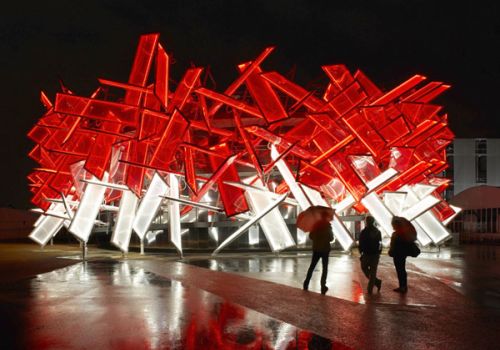 Dve stotine elemenata od kojih je sastavljen paviljon imaju integrisane senzore i osetljivi su na dodir i pokret. Zvuci koje se emituju su otkucaj srca, škripa patika, udar strele u cilj i ostali zvukovi prepoznatljivi za sportska takmičenja. Ovi zvukovi se pojavljuju u pesmi  “Anywhere in the World” u reklamnoj kampalji Coca Cole za vreme trajanja Olimpijskih igara.