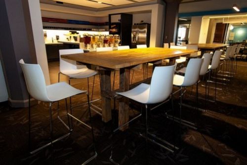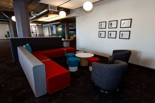 Otvoren prostor Twitter kancelarija protežu na tri sprata – od @birdfeeder kantine do zone za opuštanje koja nosi naziv plave ptičice „Larry’s Lounge“. Šare zaštitnog znaka Twittera inkorporisane su u gotovo svaki pod prostorija za sastanke, kao i zona za opuštanje.
