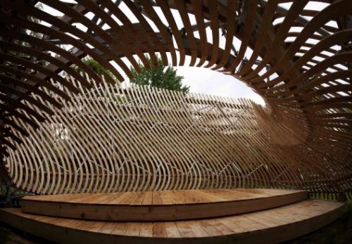 Sama struktura se sastoji od 140 iverica rebara kojima se pridružuje još 140 metalnih limova. Postoje diskretnih 2056 sklopova koji čine paviljon i više od 3000 jedinstvenih pojedinačnih komada iverica, lima i cevi.