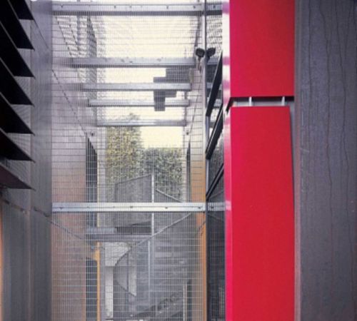 Horizontalna zarđala čelična peraja obezbeđuju hlad i sprečavaju ulazak toplote u studio