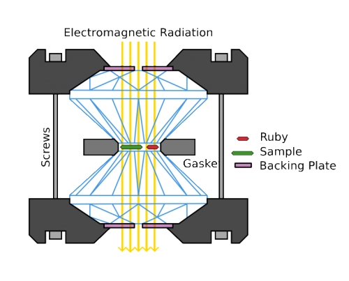 Nakovanj dijamantske ćelije je bio ključ eksperimenta. Ovo je komora super visokog pritiska napravljen od dva ravna dijamanta. Mešavina rastvarača i buckyballs-a je postavljena između dijamanata i zatim je pritisak primenjen. Kako se dijamanti međusobno pritiskaju, mešavina je izložena pritiskom, u ovom slučaju, od 600.000 atmosfera.