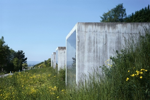 Zeleni krov pomaže u kamufliranju garaže u okruženje, ipak smo sigurni da će kolekcija zlatnih poršea parkiranih ispred prozora svakako privući pažnju. Ipak, švajcarski arhitekti su našli kreativan način da smeste cenjenu kolekciju automobila nekog srećnika u izlogu, koji ih i štiti u isto vreme.