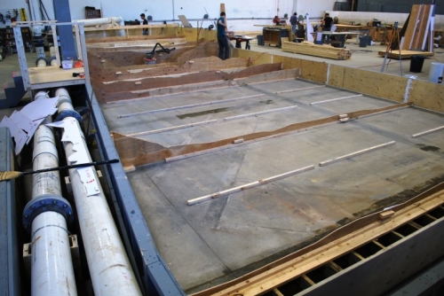 U tom trenutku su slavine pod pritiskom dodate, koje omogućavaju inženjerima da precizno mere nivo vode na različitim tačkama u modelu. Konačno, pošto reka Numedalslagen ima kameno dno, sloj bezona je dodat kako bi ga imitirao.