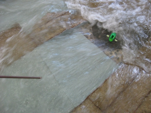 Kada je sve bilo postavljeno i pokrenuto, inženjeri su obratili pažnju na zamenu dela modela koji je predstavlja opasnu ivicu (koji je dizajniran da bude prenosiv) sa delovima materijala koji predstavljaju promene koje mogu biti učinjene na koritu u tom delu. Oni su čak napravili kajak i kajakaša od pene u razmeri jedan naprema dvanaest, koji su koristili da ocene koliko su upotrebljive hidrauličke funkcije.