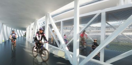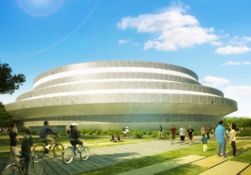 Serije spiralnih staza koje se uzdižu oko i iznad olimpijskog velodroma u gradu Kulikan, u Meksiku, su pokušaji da se poveže ova urbana zgrada sa parkom koji se nalazi nedaleko od nje. Trenutno su velodromi specijalizovani objekti okruženi velikim parkinzima. Kako bi osujetili pristup automobilima sportskom kompleksu ili bar naveli stanovnike da manje koriste automobile, projektanti su došli na ideju potpune integracije velodroma sa prirodom.