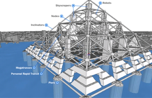 Jedna od ideja za novi sistem jeste zgrade sa šupljim bazama. Pomislite na Ajfelovu kulu, kaže Tim Džonson (Tim Johnson). On je predsednik Saveta za visoke zgrade i urbana staništa i partner u arhitektonskom birou NBBJ, i on kaže da bilo koja stvarno visoka zgrada bila preuveličana verzija pariskog repera, inače bi niži spratovi, koji bi morali da podrže postepeno sužavajuću strukturu, bili suviše veliki i ne bi mogli da se popune.