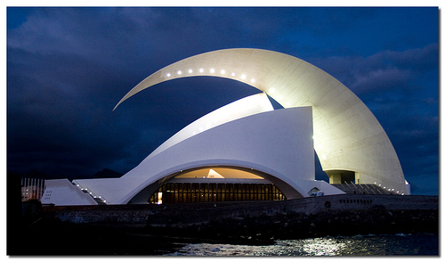 Auditorijum na Tenerifima, projektovan i izgrađen između 1991. i 2003. godine, jeste među najmanje racionalnim Kalatravinim projektima, njegov najorganski simbolični rad, koji iziskuje isti "vau" efekat ali drugačijim sredstvima. Za razliku od drugih prikazanih i izloženih građevina, struktura na Tenerifima nije čitljiva. Nema kablova, stubova, ili strukturalnih mreža koji su vidljivi.