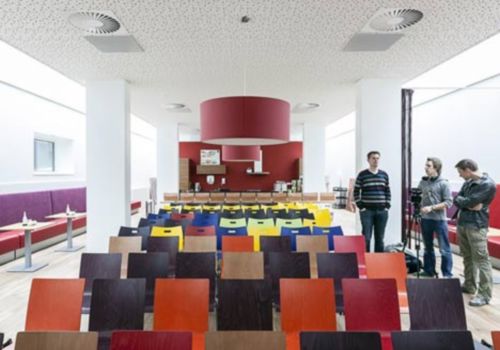 Kancelarije, sobe za sastanke i prostorije za tretmane nalaze se u prizemlju, dok su spavaće i dnevne sobe podeljene u šest odvojenih grupa na prvom i drugom spratu.
