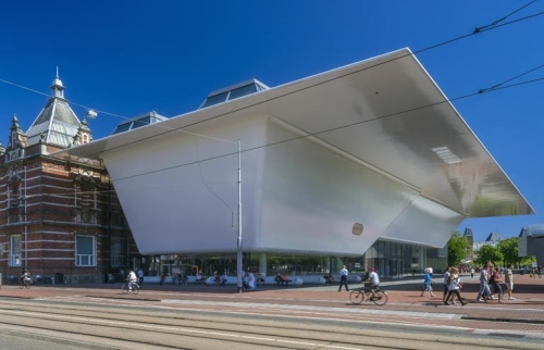 Zgrada je upoređena, verovatno pravedno, ujedno sa kadom i sudoperom. Zaista, izgleda da je "kada" nezvanični nadimak ove zgrade, koju je skovao vodeći arhitekta Meld Krauvel (Mels Crouwel). Ono što je neosporno jeste da je novodovršeno proširenje amsterdamskog muzeja Stedelijk različito, ali u vrlo specifičnom smislu.