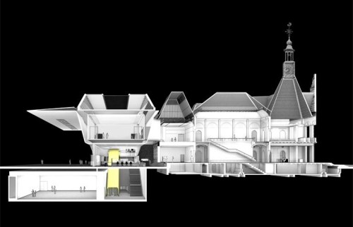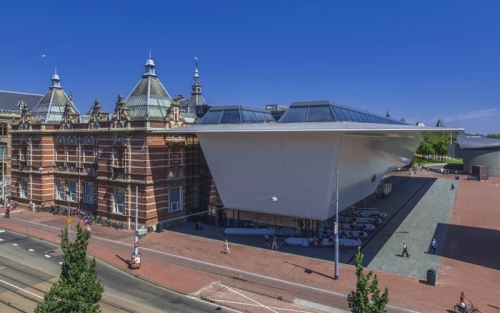 Ekspanzivni beli dodatak objektu muzeja, projektovan od strane biroa Benthem Crouwel Architects, nije mogao da izgleda drugačije zgradi postojećeg muzeja iz 19. veka od crvene cigle (projektovan od strane Adriana Viliema Vajsmana) čak i da je želeo. Ustanovljena mudrost (mada možda i ne među samim arhitektama) da proširenja moraju da učine sve da usklade svoju arhitektonsku sliku sa postojećim objektima je ovde očigledno odbijena. Ali posebnosti ne podrazumevaju nužno disonance.