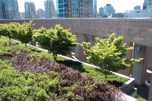 Najveći severnoamerički zeleni krov u poslednjih pet godina jeste onaj na Vankuver kongresnom centru u Kanadi. Pored toga što je veoma veliki, skoro 25.000 metara kvadratnih, zeleni krov je takođe sastavni deo ukupne ekološke misije projekta – LEED Platinum rejtinga. U suštini, on stvara jedan ekosistem primorskog travnjaka koji je tipičan za severozapad američ-kog kontinenta. „Projekat živog krova jeste ambiciozan u integrisanju u širu ekologiju i pejzaž vankuverske obale“, kaže Mark Redington (Mark Reddington) iz biroa LMN Architects. „On je dovoljno veliki da smesti jedan ekosistem. Postoji niz različitih vrsta biljaka, kao i ptica, poljskih miševa i ostalih životinja koji žive tamo. On je takođe dom za 250.000 pčela u košnicama, čiji med se sakuplja i služi u objektu.“