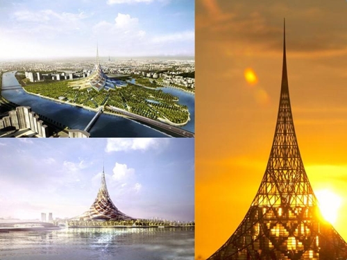 Uzdižući se sa velikog javnog trga, celokupni kompleks je zatvoren unutar ogromne superstrukture oblika šatora, koja će u svom srcu imati jednu od najviših naseljenih zgrada na svetu. Kao novi grb na panorami grada i sam nudi panoramske poglede na Moskvu sa platforme koja je smeštena na vrhu.