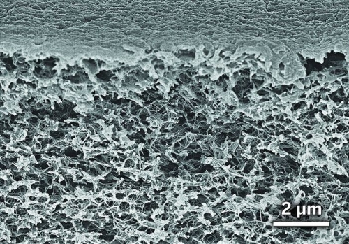 Elektronski mikrograf ćelijske strukture polimer aerogela |