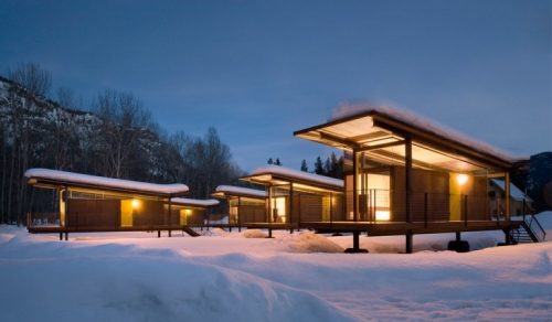 Prateći poslednji trend, kolibe nude jednostavni ali luksuzni smeštaj sa minimalnom frkom. Niskotehnološka i sa malim uticajem na prirodu, svaka koliba ima drvenu konstrukciju sa čeličnim ramom i velikim staklenim zidom koji se otvara ka privatnom dvorištu. Štaviše, ugaoni krovni panel se izgleda oslanja na vrhu pravougaonog stakla, stvarajući povišeni otvor koji omogućava poglede na okolni pejzaž uz potpunu privatnost.
