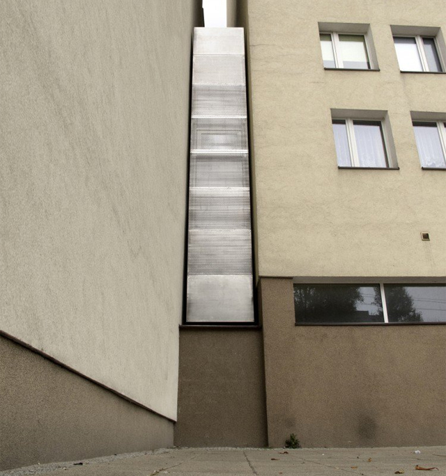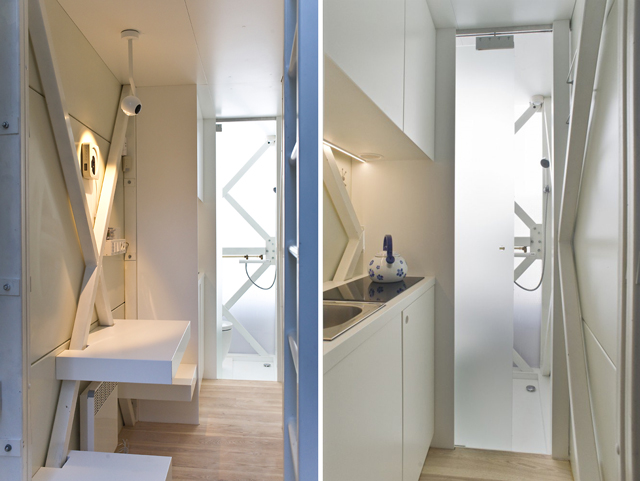 Ipak, njena malena veličina nije uspela da spreči arhitektu Jakuba Ščenznija (Jakub Szczęsny) iz biroa Centrala, da tu smesti kuhinju, toalet i tuš, kao i spavaću sobu (jednokrevetnu, naravno). Po danu ovo je iznenađujuće dobro osvetljen prostor, što je karakteristika koju Ščenzni pripisuje korišćenju materijala od polikarbonata, koje su svetle boje, i koji zbog relativno male debljine maksimiziraju širinu unutrašnjeg prostora.