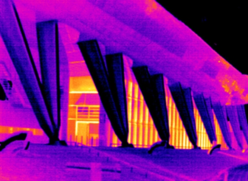 Pored izvođača, projektanti se mogu okrenuti drugom resursu kako bi popravili curenje: termoviziji. "Termografija je način skeniranja fasade ili omotača objekta i pronalaženja kritičnih oblasti brzo i direktno", kaže Dejvid Feleti, stručnjak u konsultanskoj firmi Wiss, Janney, Elstner Associates (WJE).