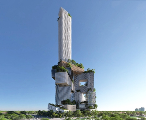 Na prvi pogled, neboder Peruri 88 deluje kao arhitektonski kolaž sastavljen od različitih objekata pripojenih jedni uz druge. Samostalni grad u malom obuhvata stanove, hotele, kancelarije, prodavnice, bioskope, džamiju, amfiteatre i bujne zelene prostore na svim visinama.