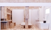 Komponente za skladištenje i nameštaj su zapravo smeštene u zidove, spremne da se izvade po potrebi. Kada se nameštaj i prostor za skladištenje ne koriste uopšte, ovaj sistem oslobađa dnevni prostor, gde zid postaje prazno platno koje koje ne ometa životne navike. U suštini sve komponente koje su potrebne za život su prisutne, ali predstavljene na način da ne dominiraju stanom.