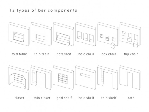 Osnova Barkod sobe jeste skup tri klizna zida (ili bara) koji mogu da se pomeraju kako bi formirali višestruke konfiguracije. Pomeranjem zidova u različite pozicije, stanari mogu da prilagode prostor tako da odgovora njihovim potreba u datom trenutku.