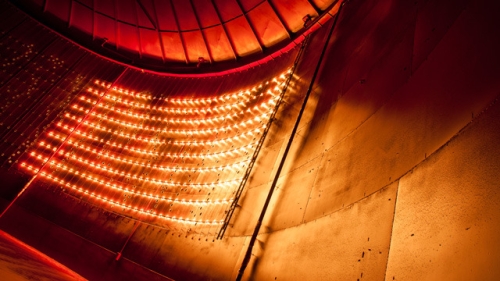 Obojen u zagasito crvenoj boji u enterijeru, silos će svetleti tokom dana zahvaljujući hiljadama svetlosnih izvora. Noću će se LED diode paliti i osvetljivati prostor prema senzorima koji su podešeni da detektuju preovlađujuće vetrove, oponašajući jata ptica.