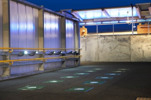 Svaki put kada neko stane na pločicu, centralno svetlo se osvetli, "spajajući" osobu sa ulogom koju ona igra u proizvodnji 2,1 vata elektriciteta svakog sata koje pločice mogu da proizvedu (usputno obezbeđujući sebi energiju za osvetljenje pešačkih pravaca).