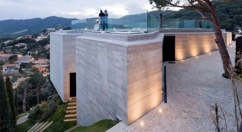 X kuća se nalati u brdima Kabrils, na periferiji Barselone. Ona obuhvata 300 kvadratnih metara površine, sa zidovima visine od 6 metara koji su napravljeni od betona visoke gustine koji je izliven pri visokom pritisku u jednostranoj oplati.