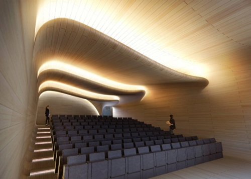Ceo projekat odiše pokretima kroz krivudave putanje koje protiču kroz spoljašnje panele i vidljivi su u zakrivljenim stolovima i nameštaju. Apstraktni koncept je projektovan od strane biroa Zaha Hadid Architects 2006. godine, ali je izgradnja odložena zbog problema sa planiranjem i finansiranjem.