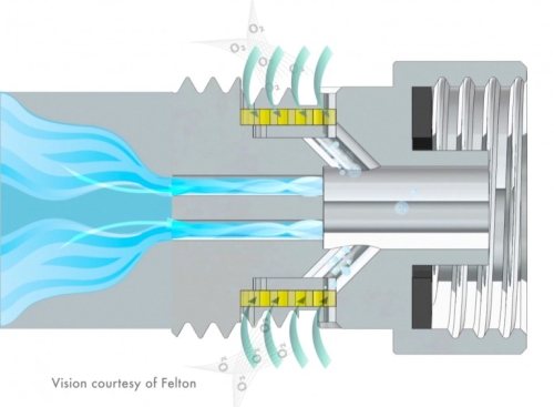 Tuševi sa smanjenim protokom vode su dobar način da sačuvate vodu, ali njihovo korišćenje je pomalo kao da se tuširate sa sprejem. Kompanija Felton sa Novog Zelanda, u saradnji sa australijskom Komonvelt organizacijom za naučno i industrijsko istraživanje (CSIRO - Commonwealth Scientific and Industrial Research Organisation), razvila je „Oxijet“ - vazdušni tuš bateriju koja ubacuje sitne mehuriće vazduha u kapljice vode kako bi korisnik imao utisak da se tušira pod punim pritiskom vode, a zapravo se koristi 50 odsto manje vode.