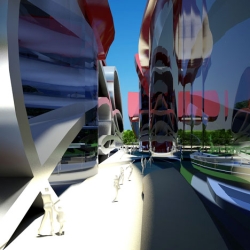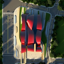 Zgrada od 60.000 kvadratnih metara će biti podeljena na tri paralelna segmenta, svaki sa drugačijem sklopom nabora koje arhitektonski biro Marques&Jordy porede sa „zakrivljenim i seksi linijama automobila i pokreta“.