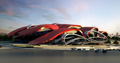 Svaki segment će biti obojen u crveno kao omaž boji koju favorizuju automobilski brendovi kao što je Ferari. Arhitekta Ju Džordi Fu je objasnio: „Sa Oasis izložbenim centrom mi transformišemo ljubav prema sportskim automobilima u senzacionalnu arhitekturu.“