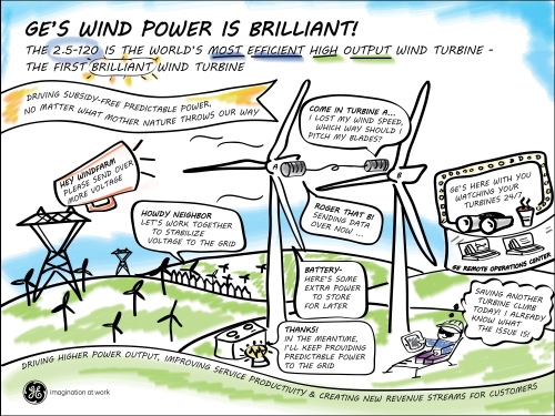 „Naša 2.5-120 vetroturbina prva koristi industrijski internet kako bi se vetropark lakše nosio s intemitentnom prirodom vetra, obezbeđujući predvidivu proizvodnje energije bez obzira na raspoloženje majke prirode“, rekao je Vik Abeit, potpredsednik divizije za obnovljivu energiju kompanije GE.