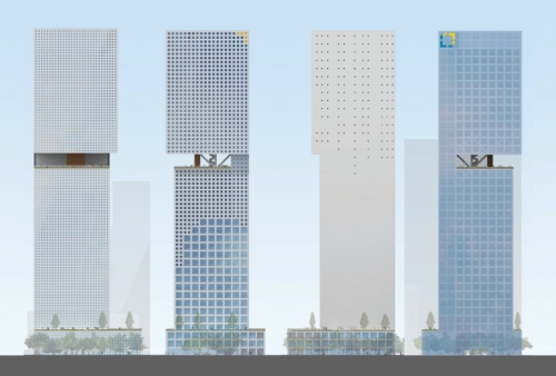 Arhitektonski biro OMA je takođe projektovala neboder sa prozorima koji su strateški dimenzionisani i pozicionirani kako bi dobili odgovarajuću količinu sunčeve svetlosti tokom dana. Istočna i zapadna strana nebodera ima uže prozore koje sprečavaju direktni prodor previše svetla, dok severna i južna strana imaju kombinacije velikih i malih prozora, u zavisnosti od toga gde svetlost najviše sija - svaka strana ima svoj jedinstveni obrazac.