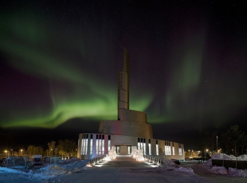 Međunarodni arhitektonski biro Schmidt hammer lassen je u ponedeljak najavio inaguraciju Katedrale polarne svetlosti u Alti, Norveška, koja se nalazi nekih 500 kilometara unutar Arktičkog kruga. Metalni spiralni oblik zgrade, koji je zapravo presvučen titanijumom, gotovo liči na komad industrijskog, a ne arhitektonskog dizajna.